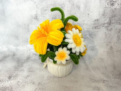 Composition florale en pot – Jaune et blanc